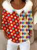 Damen Kölner Karneval Bedrucktes Reiß verschluss Pelz kragen Top