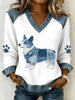 Damen Lovely Corgi Muster Denim Patchwork V-Ausschnitt Top
