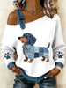 Damen Lovely Dackel Muster Denim Patchwork Top