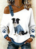 Damen niedliches Animal Print Denim Patchwork Komfortables Top