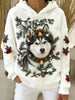 Damen Retro Tier Kunst Print Komfortables Flanell Kapuzen Sweatshirt