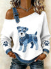 Damen-Schnauzer-Hunde muster Denim-Patchwork-Top
