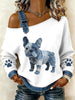 Damen schöne französische Bulldogge Muster Denim Patchwork Top