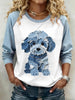 Damen schöne Hunde muster Denim Patchwork Sweatshirt