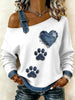Damen Vintage Hunde pfote Patchwork Print lässig schulter freies Sweatshirt