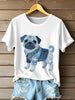 Frauen schöne Mops Hund Denim Patchwork Muster T-Shirt