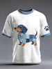 Herren Denim Patchwork Kunst Dackel Hunde muster gewaschen T-Shirt