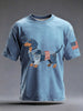 Herren Denim Patchwork Kunst Dackel Hunde muster gewaschen T-Shirt