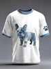 Herren Denim Patchwork Kunst Französische Bulldogge Muster gewaschen T-Shirt