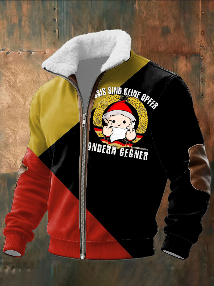 Herren-Jacke mit Reiß verschluss in Rot & Schwarz "Ossis Sind Keine Opfer"