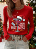Women's Funny Christmas Santa's Favorite Hot Mess Casual Waffle Long Sleeve Top