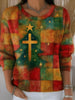 Women's Retro Christmas Tree Faith Print Long Sleeve Shirt